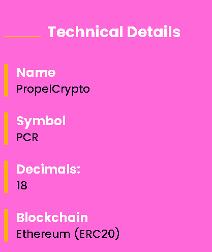 PropelCrypto (PCR) stands as an ERC20 token operating on the Ethereum blockchain, originating from a total supply of 1 quadrillion tokens, then reduced to 1,000,000,000 post-burn. PCR’s primary role is to act as an Entrepreneur’s Token in Africa, enabling entrepreneurs to own, own and trade these tokens for profit. Additionally, it serves as an important financial engine in establishing a Free Business School that focuses entirely on Entrepreneurship.